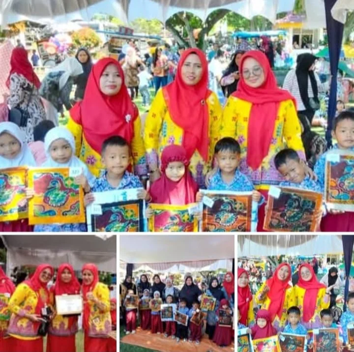 Anak-anak dari berbagai TK di Pekanbaru tampak antusias memegang canting dan mencoba menggambar motif batik di atas kain putih. Kegiatan ini diikuti oleh sejumlah sekolah, di antaranya: