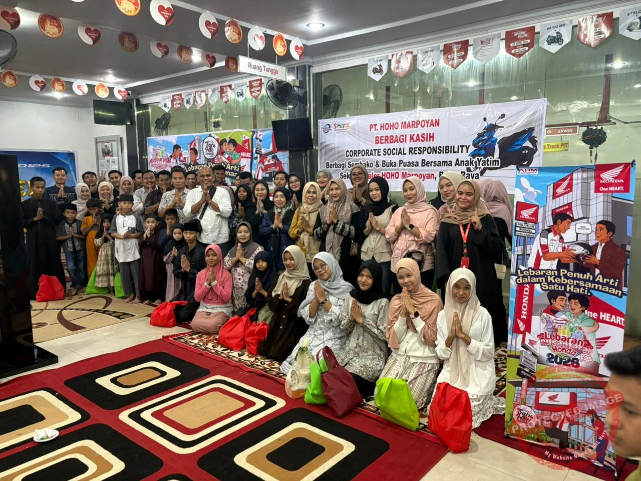 Wujud Nyata Kepedulian Lingkungan (CSR) Sebagai bentuk tanggung jawab sosial perusahaan (CSR), HOHO Marpoyan mengundang 20 anak yatim yang berdomisili di sekitar lingkungan dealer. Tidak sekadar berbuka puasa, manajemen juga memberikan santunan berupa sembako dan tali asih sebagai wujud kepedulian terhadap sesama.