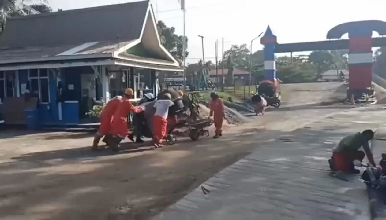 Masyarakat Kecamatan Lirik, Kamis (16/10) melihat pekerjaan pengecoran jalan Camp 1 PT.Pertamina EP Lirik Field tepatnya di jalan gerbang masuk Camp 1 PT.Pertamina EP Lirik Field.