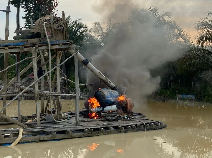 Untuk mencegah agar tidak digunakan kembali, petugas melakukan pengrusakan dan pembakaran terhadap mesin serta peralatan PETI lainnya di lokasi. Langkah ini kami ambil sebagai bentuk penegakan hukum sekaligus pencegahan agar aktivitas serupa tidak terulang,” terang Kapolsek.