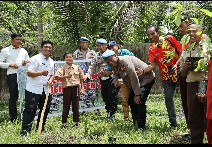 Dalam rangka mendukung program Green Policing yang dicanangkan Kapolda Riau, Seksi Profesi dan Pengamanan (Sipropam) Polres Kuantan Singingi menggelar kegiatan penanaman bibit pohon di halaman SD Negeri 023 Kebun Nenas, Rabu (1/10/2025) pagi.